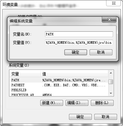 ② 在系统变量里面找一个变量名是PATH的变量,如果没有就新建一个。在它的变量值里面追加代码%JAVA_HOME%\bin;%JAVA_HOME%\jre\bin;,如图1.16所示。