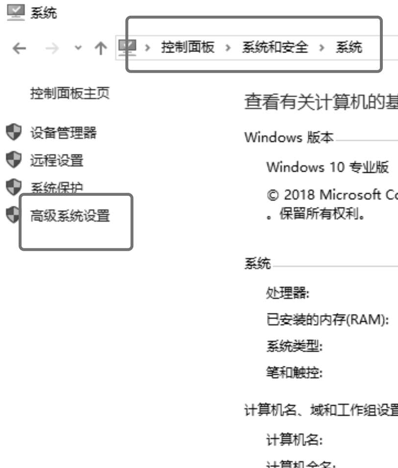 (1)打开控制面板,单击系统和安全,单击系统,找到左侧的高级系统设置,如图1.13所示。(2)单击高级系统设置,进入图1.14所示的系统属性对话框。