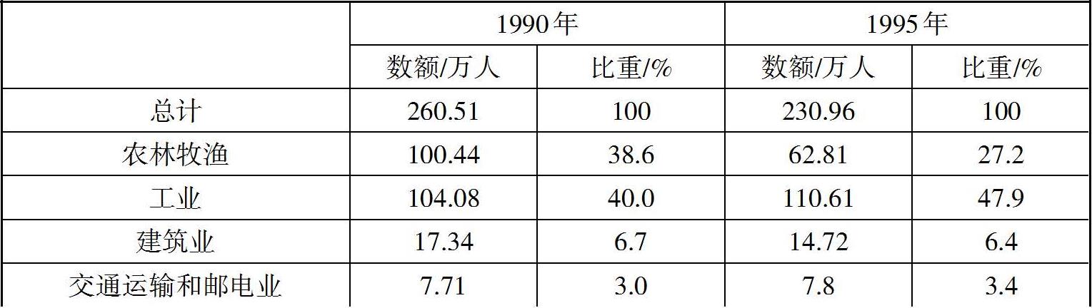 表2.2 苏州农村劳动力就业构成(1990、1995年)