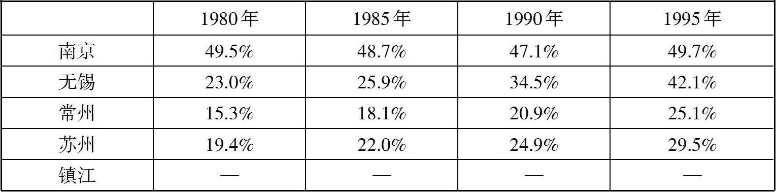 表2.3 苏南五市城镇化率变化情况(1980—1995)