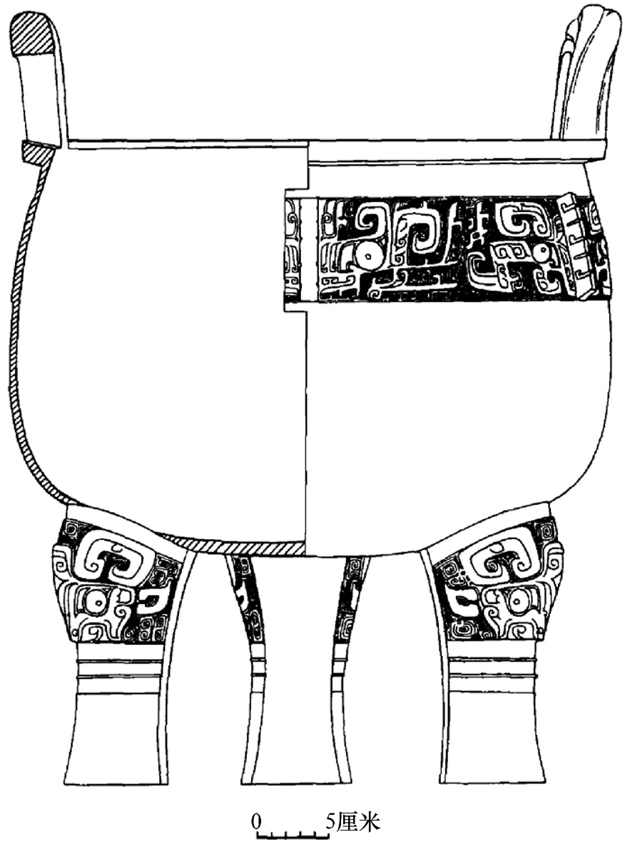 近似。后2件铜鼎的时代属殷墟文化第四期后段。小方鼎(M160:21),器身呈方斗形,口大底小,底部微鼓,足较高,腹饰夔纹与三角纹(图三),与小屯82M1:30
