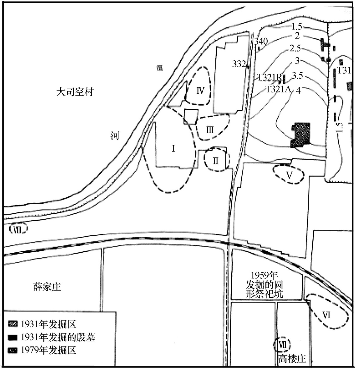 1991年冬,在冈的西部,1971年发掘的殷墓以北,发掘了38座殷墓。其中有2条墓道的大墓2座,其余为长方形竖穴墓。