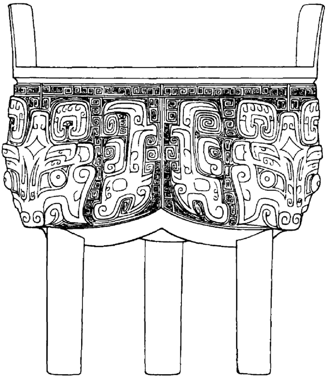 ;又新见一种线条简练、明快,省去地纹的饕餮纹,如大司空村M53:27铜觯上的纹饰。