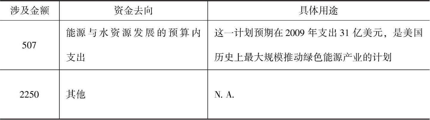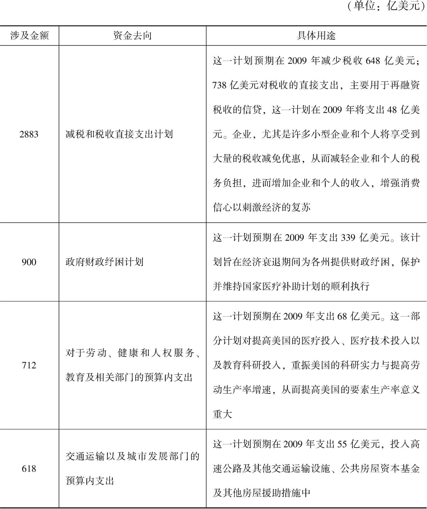 法案所涉及7870亿美元财政支出的具体用途如下(见表2-1)。