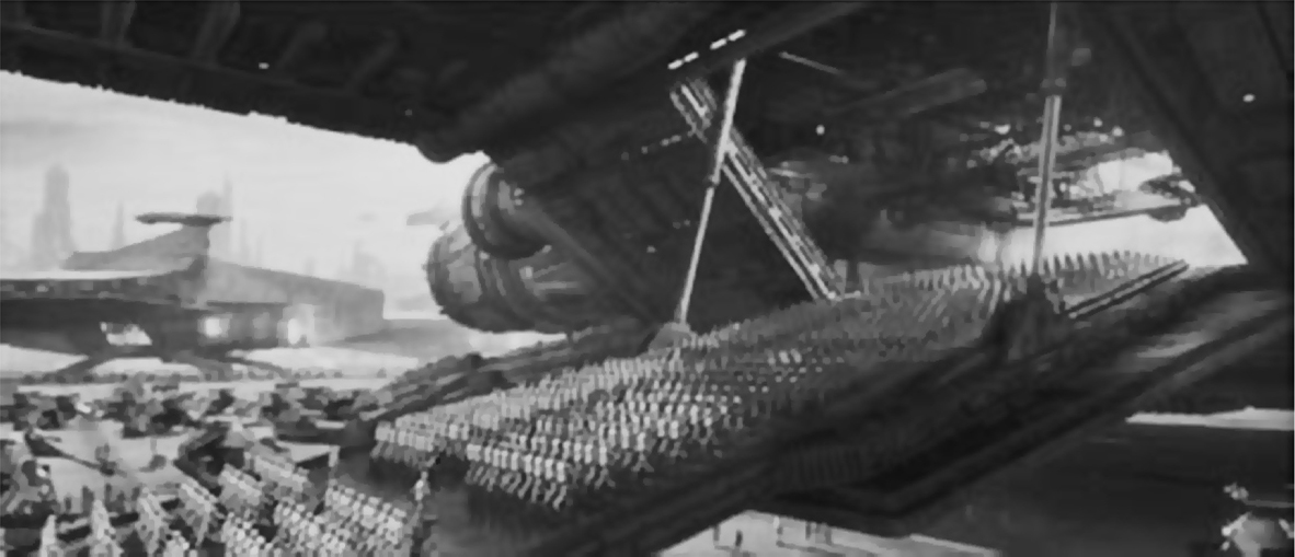 图9 乔治·卢卡斯的《星球大战》第2集《克隆人的进攻》(2002年)剧照,描绘克隆人军队。