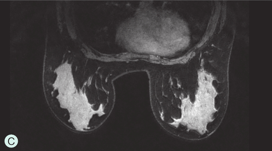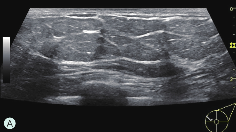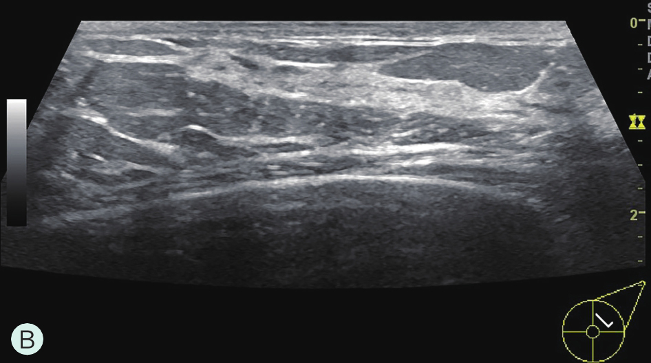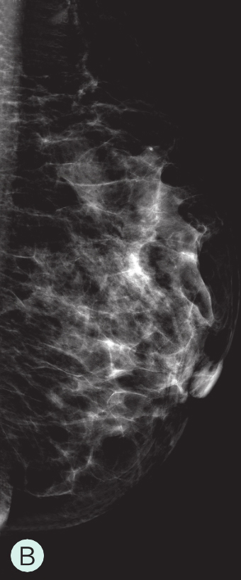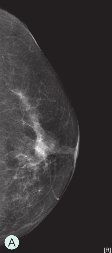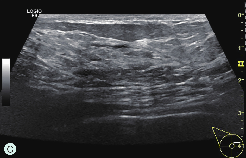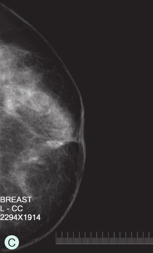 C级:不均匀致密型(可能掩盖小肿块)(图1-3-1C、图1-3-2C、图1-3-3C)。