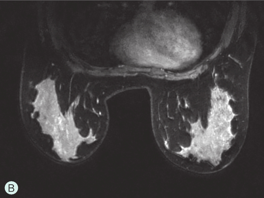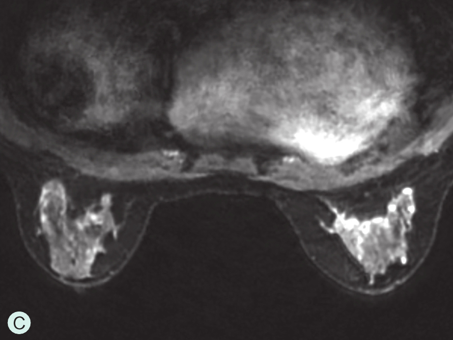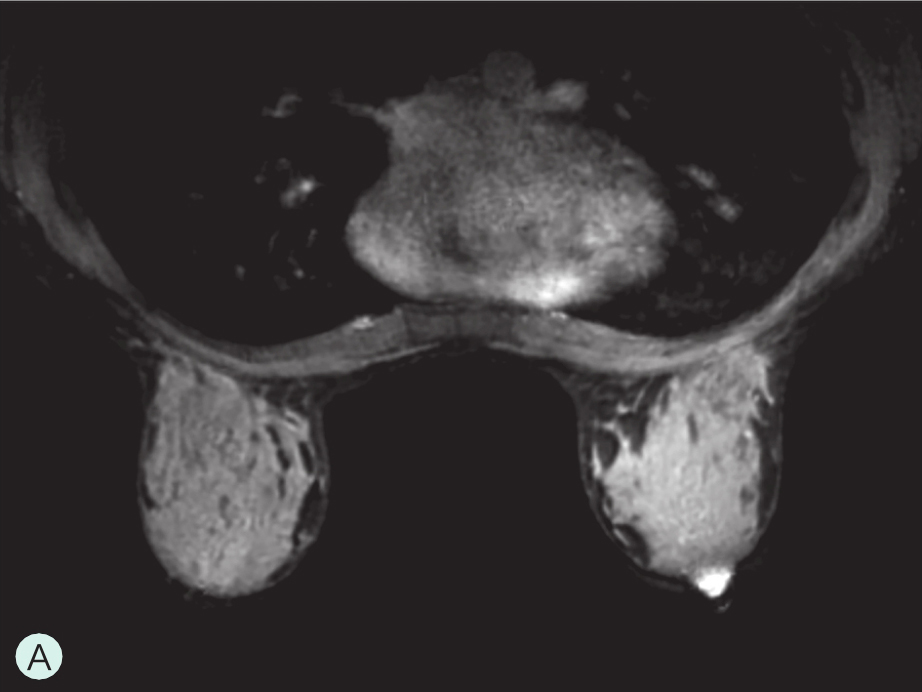 图1-4-4 增强MRI时不同乳腺腺体增强强度