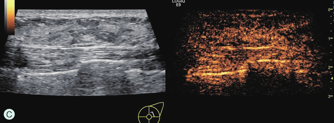 哺乳期的正常激素改变会引起乳腺密度增加和快速弥漫性强化,干扰对结果的正确解读,因此哺乳期乳腺超声造影的价值有限。