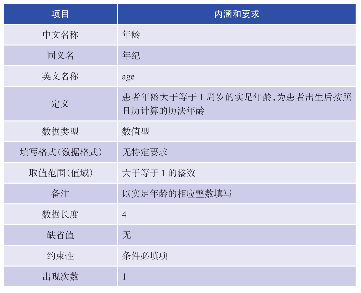 “年龄(岁) ”指患者年龄大于等于1周岁的实足年龄,为患者出生后按照日历计算的历法年龄。