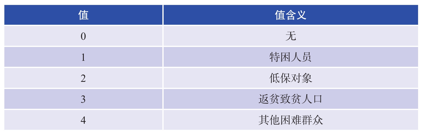 特殊人员类型应与医疗保障待遇清单保持一致,其他困难群众由各地根据本地保障政策规定的其他困难群众类型自行添加(表1-35)。