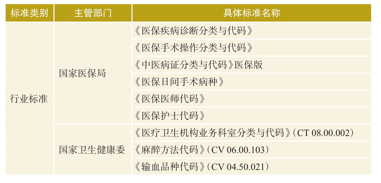 住院诊疗信息引用的数据标准主要为行业标准(表3-2)。