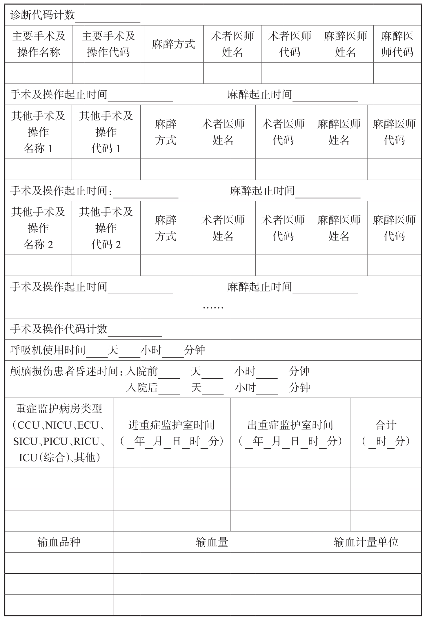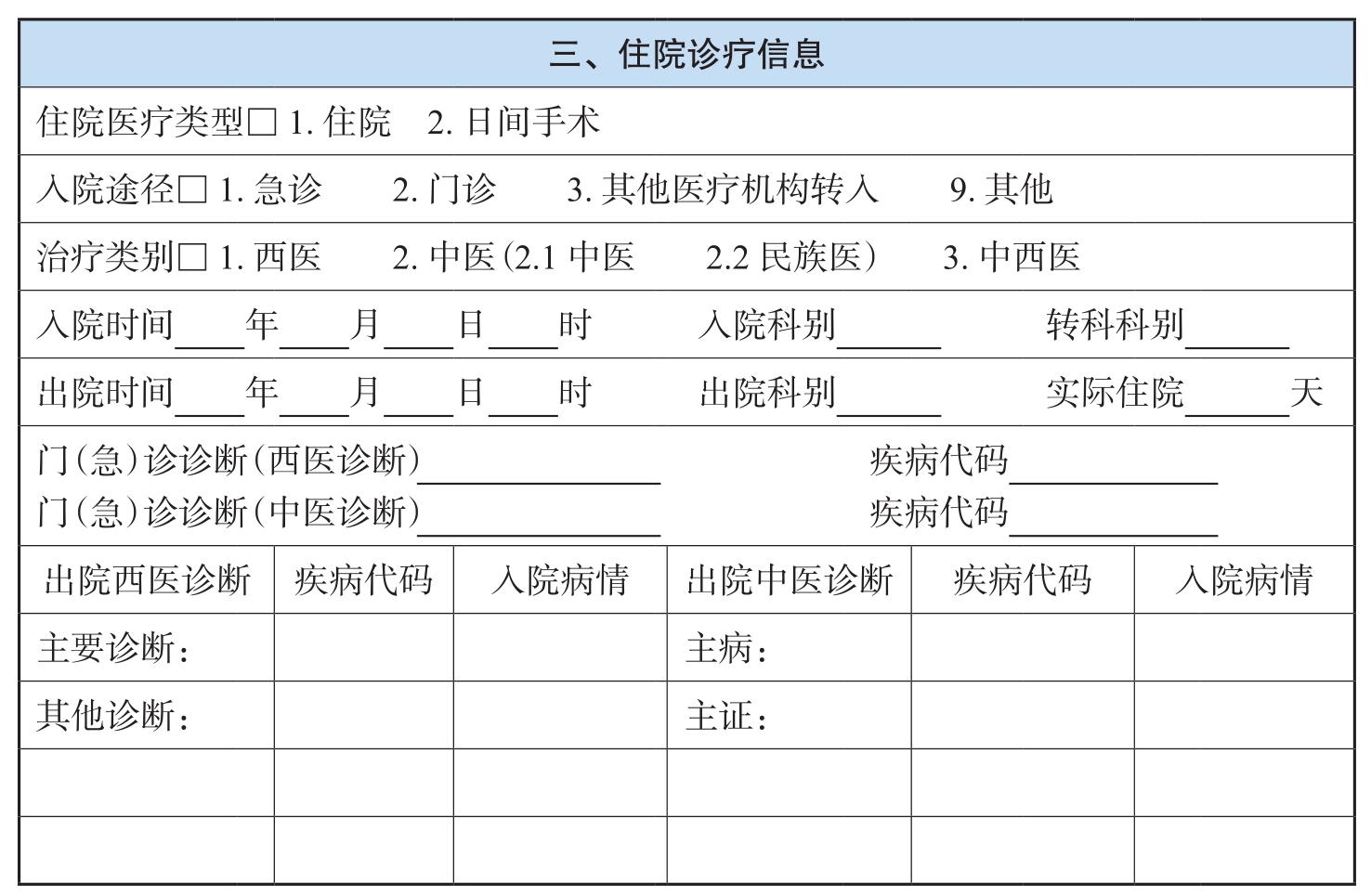 表3-2 住院诊疗信息参考标准