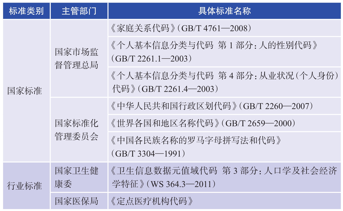 基本信息引用的数据标准,包括国家标准和行业标准(表1-1)。