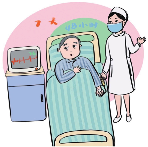 第一个时间概念是“7天”,这是区别阵发性房颤和持续性房颤的时间点。房颤刚开始的时候,往往是发发停停的。可能1年发作3~4次,每次发作时患者心慌、心悸,心率150~160次/min,到医院治疗好转后,可能过几个月又发作了。但是如果房颤发作了7天还没有好转,变成了持续性房颤,就很有可能永远无法恢复了。所以,房颤发作后就诊时间千万不能拖过7天。