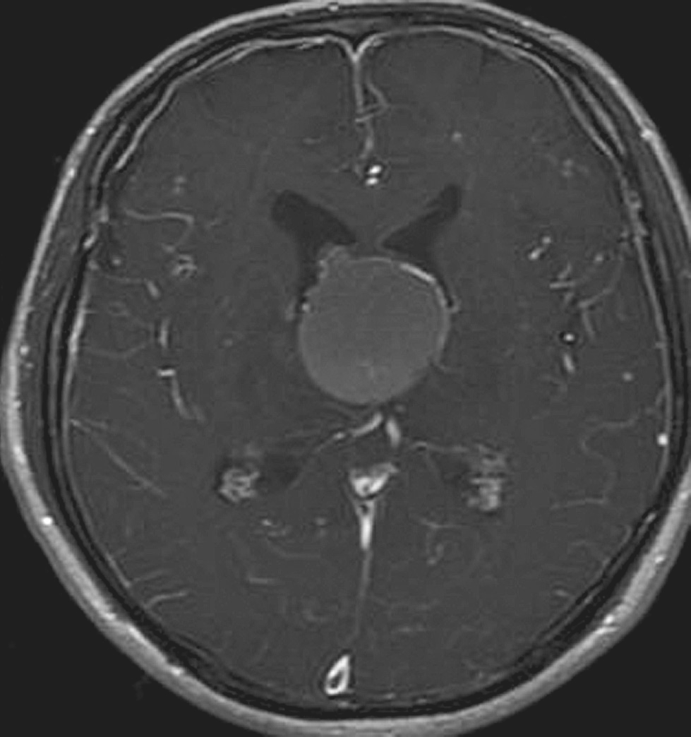 初步诊断:第三脑室内占位性病变;高压力性脑积水。
