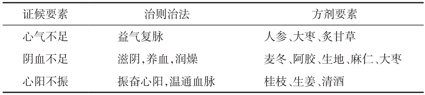 炙甘草汤证由桂枝汤去芍药,加人参、生地、麦冬、麻仁、阿胶组成。方中生地、麦冬、麻仁、阿胶、大枣滋阴养血,充脉之体;人参、大枣、炙甘草补中益气,使气血生化有源,以复脉之本,即所谓“中焦受气取汁变化而赤是为血”;桂枝振奋心阳,配生姜以温通血脉;清酒煎煮助阳气、行药力而通血脉,使滋阴而无滞结之患。诸药相伍,滋补气血阴阳,适宜于冠状动脉粥样硬化性心脏病(简称冠心病)、阵发性室上性心动过速、不稳定型心绞痛等心血管疾病,证属阴阳两虚者。
