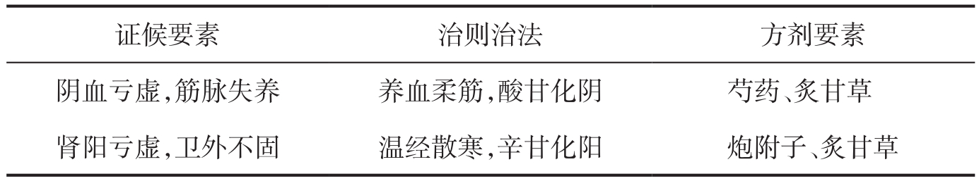 本方为甘酸苦养阴之方,方中白芍药酸苦微寒,滋阴养血,缓急止痛;炙甘草甘温,补中缓急,二药相合酸甘化阴,使阴液得复,筋脉得养,则脚挛急即伸。