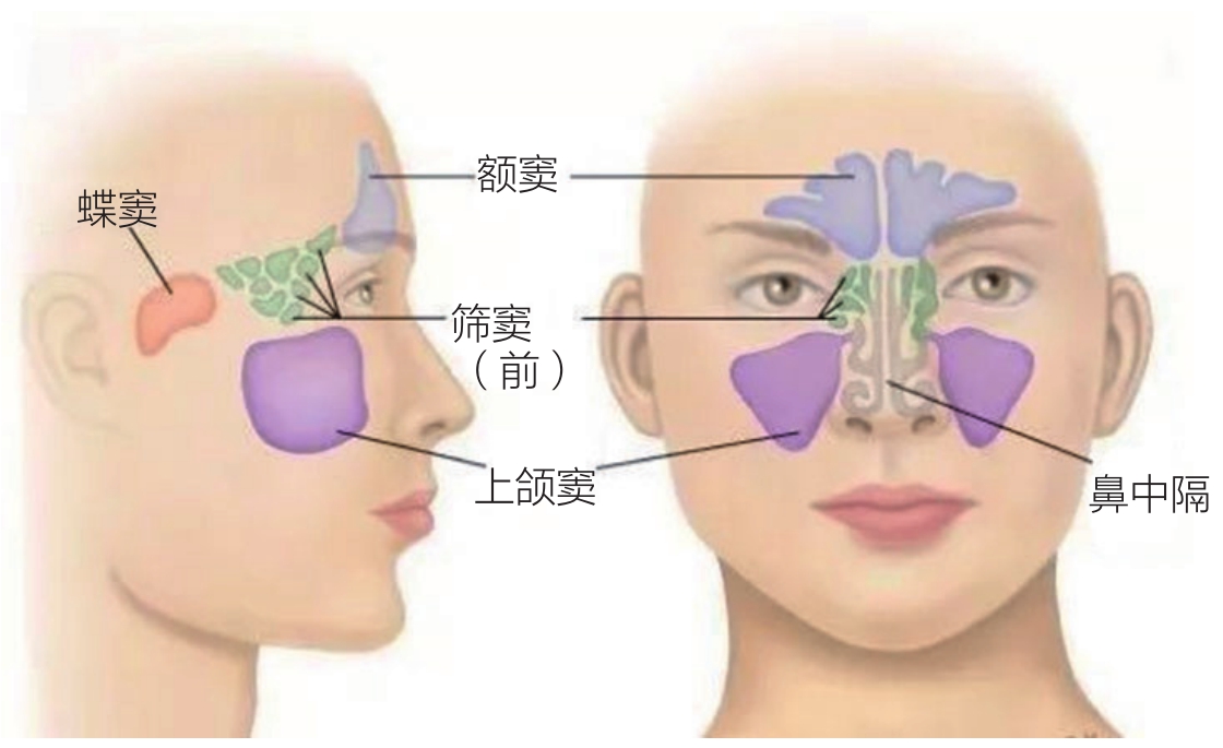 鼻窦和眼眶仅仅有“一墙之隔”,这个“墙”就是眶壁。鼻窦包括四组,分别为:额窦、筛窦、上颌窦和蝶窦,它们都位于眼眶周围;额窦位于眼眶的上内侧,筛窦位于眼眶的内侧,上颌窦位于眼眶的下方,蝶窦位于眶尖和视神经管的内侧,因此鼻窦出现病变也可能会导致眼睛的症状。