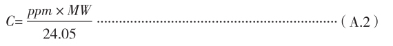 A.2.6 职业接触限值的计算单位以毫克每立方米(mg/m 3 )表示,与ppm的换算按式(A.2)进行。