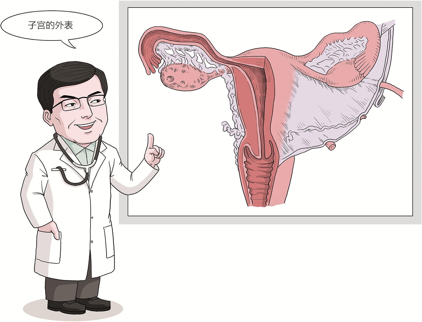 子宫体和子宫颈的组织结构还不太一样,子宫体由内向外分为子宫内膜层、肌层和浆膜层。子宫腔内膜由内到外又可分为三层,分别为致密层、海绵层和基底层,前两层位于内膜表面的2/3,称为功能层,受卵巢激素影响可以周期性增生和脱落,伴随内膜的脱落子宫出血形成月经,基底层位于紧靠子宫肌层的内1/3内膜,不受卵巢激素影响。子宫内膜是受精卵的温床,如果内膜受损过薄不足以让受精卵扎根,就可能引起不孕症或流产。长期子宫内膜炎症或人工流产等宫腔操作容易引起子宫内膜的损伤,所以一定要注意爱护内膜,做好避孕措施,避免或减少流产次数。子宫颈管内黏膜为单层高柱状上皮,内含腺体可分泌碱性黏液,形成的黏液栓堵塞子宫颈管,可以说是子宫内膜的哨兵,抵挡来自阴道的病原微生物,保护子宫内膜,减少感染机会。月经期由于经血的冲刷,宫颈黏液栓脱落,防御能力下降,因此一定要注意经期卫生,尤其避免经期性生活。宫颈阴道部由复层鳞状上皮覆盖,其与柱状上皮交界处为宫颈癌的好发部位。