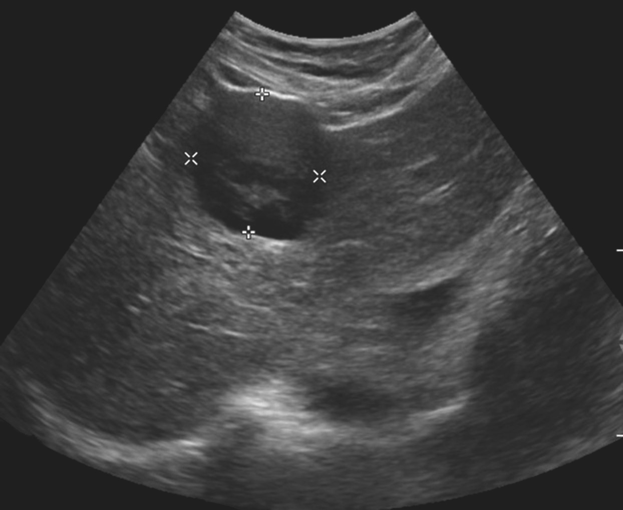 图1-7-4 肝内胆管细胞癌灰阶超声图像