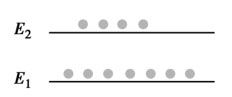 前文述及光、原子、能级和光谱;而物质则由一些同类微粒所组成(即原子、分子、离子)。这些微粒处于不同的能级上,而在这些能级中,用 E 1 及 E 2 分别表示两个能级量, E 1 所带的能量少,属低能级; E 2 所带的能量多,为高能级(图2-1-1)。粒子所含的能量不同,总的来说在低能级的粒子占多数,高能级的占少数。因此,在低能级( E 1 )中的粒子数大于高能级中( E 2 )的粒子数。可用图表示高、低能级( E 1 、 E 2 )上粒子数的分布。