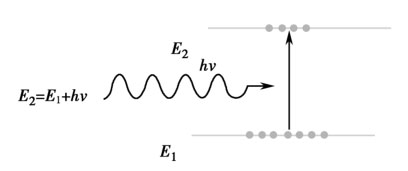 图2-1-2 E 1 低能级上的粒子被激发到 E 2 高能级上