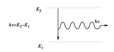 图2-1-4 处于高能级 E 2 上的粒子跃迁到低能级 E 1 上,同时发射出一个光子