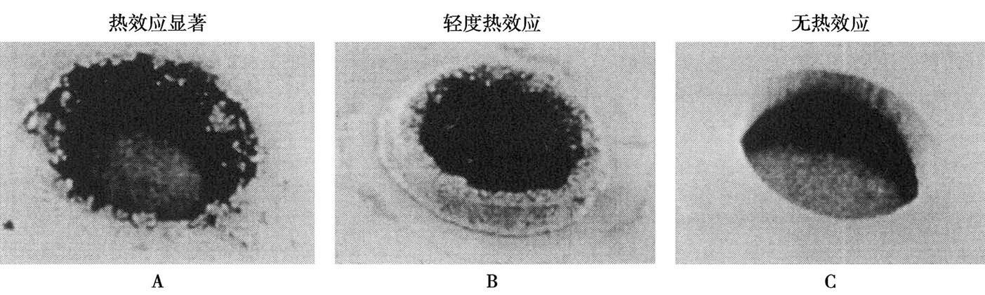 准分子激光的能量几乎完全被角膜细胞吸收。用氩氟准分子激光对动物角膜作切除,并进行超微结构检查,实验发现切口精确,边界清晰,周围无热损伤现象(图2-1-9)。