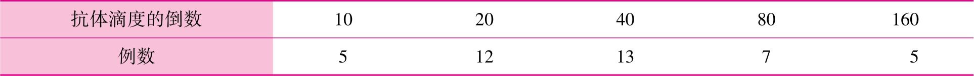 2.某地42 例微丝蚴血症者治疗7 年后用间接荧光抗体试验测得抗体滴度见表2-2,求平均抗体滴度。