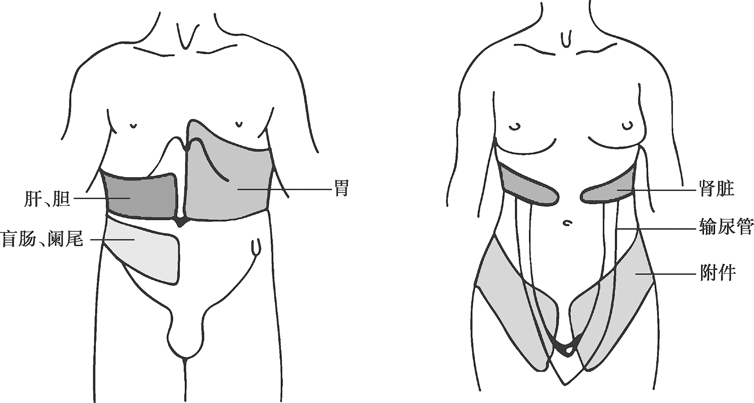 腹部常见疾病的压痛部位见 图3-5-4 。