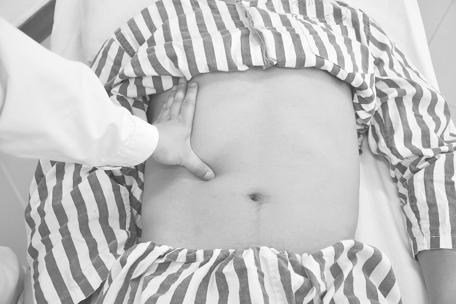 腹部检查时,视诊非常重要,部分体征通过直视可以直接发现,如胃肠型和蠕动波。进行腹部视诊前,应当让患者排空膀胱,取低枕仰卧位,两手自然置于身体两侧,充分暴露全腹,上自剑突,下至耻骨联合。