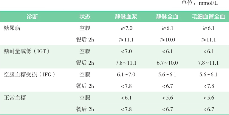 表4-4-2 糖尿病及其他高血糖的诊断标准