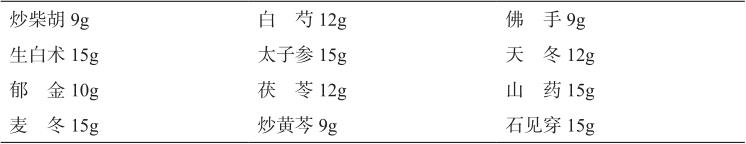 本患者为年轻女性,胃黏膜病变较重,属于中度萎缩伴有中度肠化。患者因平时饮食、作息明显失调导致脾胃功能受损,工作压力较大,情绪比较急躁,肝气郁结的症状比较明显,肝气横逆又可犯胃,则出现腹胀、反酸、口苦等表现,肝胃气郁不疏,津液不布,日久化热,胃阴受损,则口干、便干。舌根苔黄偏厚,表明体内有湿热蕴结。此患者属于肝脾同病,在三草调胃汤基础上加强疏肝、养阴、清热的药物。由于本例为中度萎缩伴有中度肠化,故方中解毒抗癌之力需增加,因而加用柴胡、白芍、佛手疏肝行气;天冬、麦冬滋养胃阴;黄芩、郁金清肝胃郁热;预知子既可疏肝行气,又能活血止痛;炒海螵蛸抑酸。二诊时患者腹胀未缓解,加木香、炒莱菔子行气消胀;大便仍干,生白术用量加大。四诊时患者诉口苦、有口气,考虑中焦湿热未除,加半枝莲清热解毒兼活血。14剂后患者诸症状缓解,坚持治疗2个多疗程,胃脘不适症状消失,胃黏膜病变明显减轻。