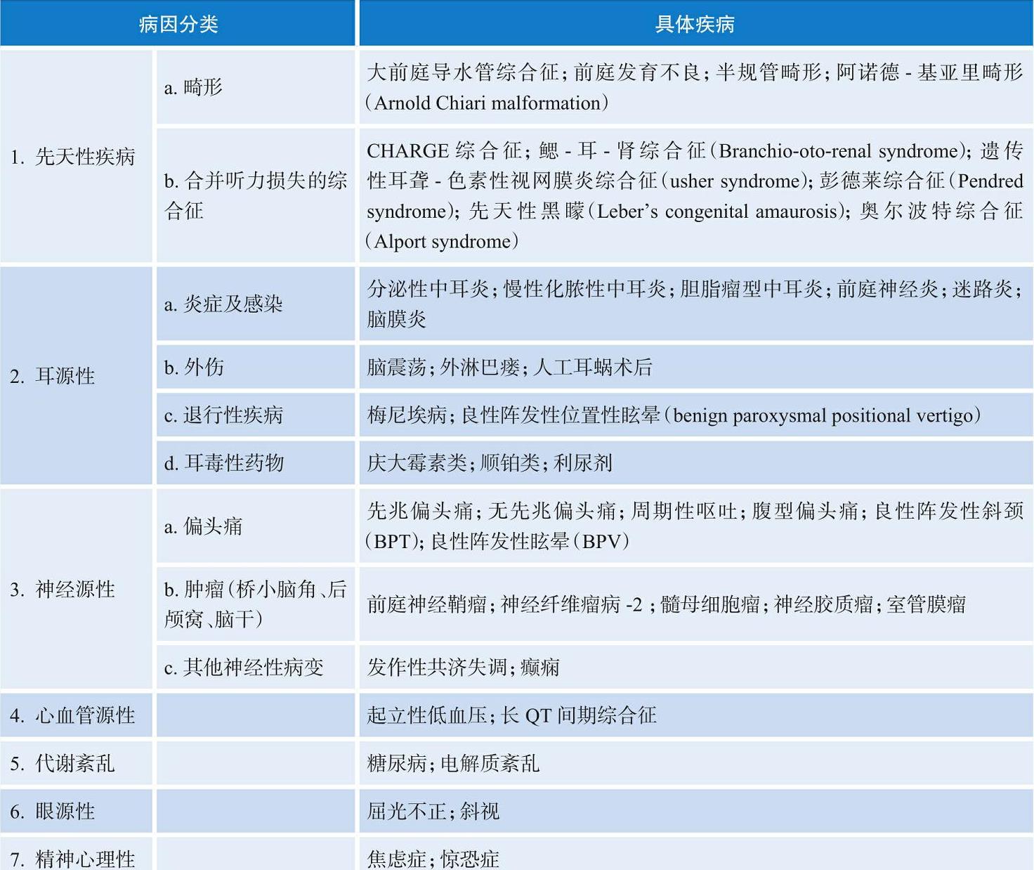 表11-0-1 儿童眩晕与平衡障碍病因分析