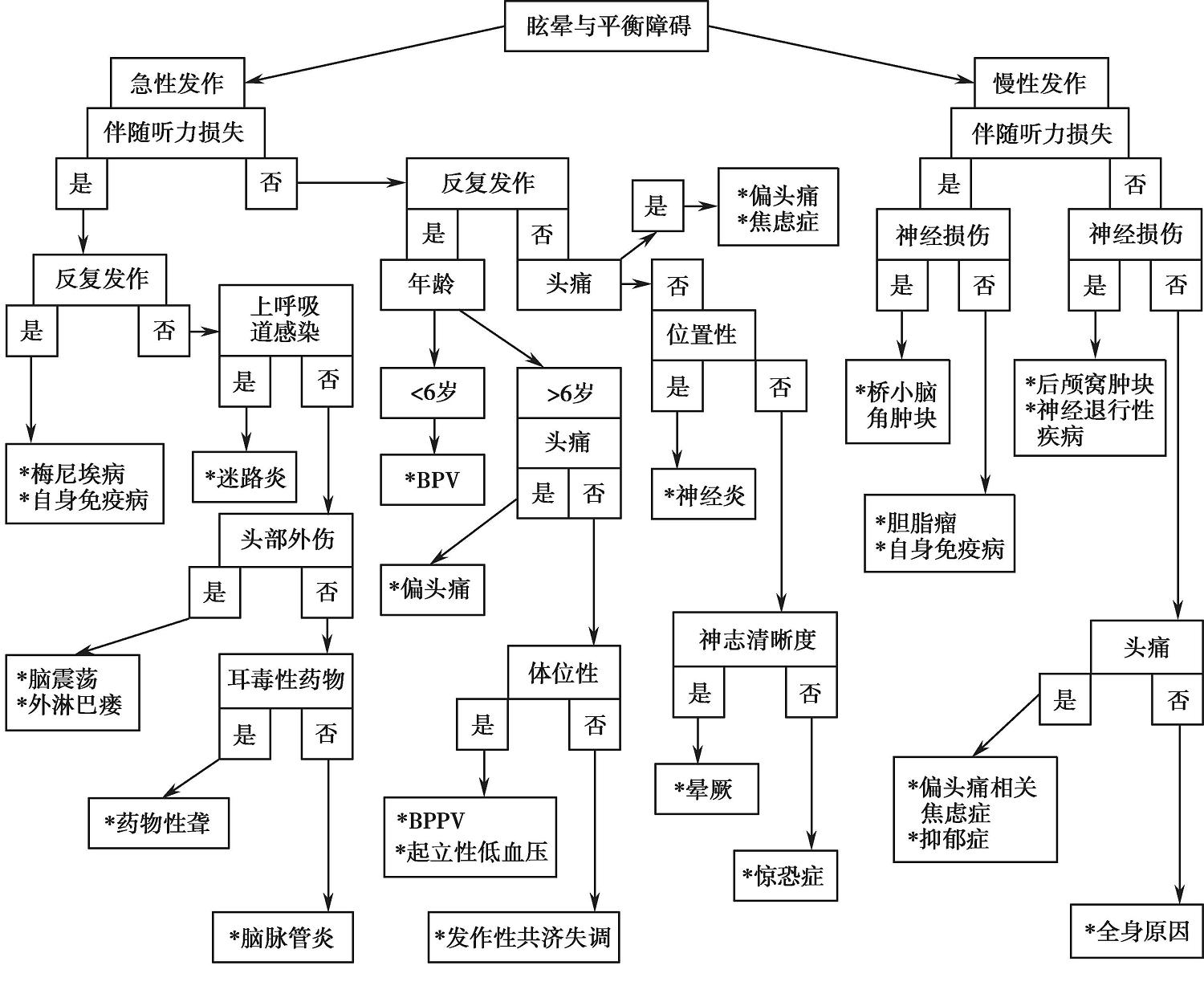 图11-0-1 儿童眩晕与平衡障碍鉴别诊断流程图