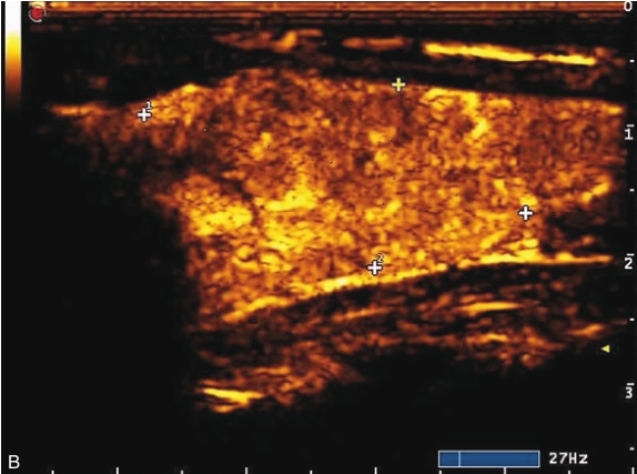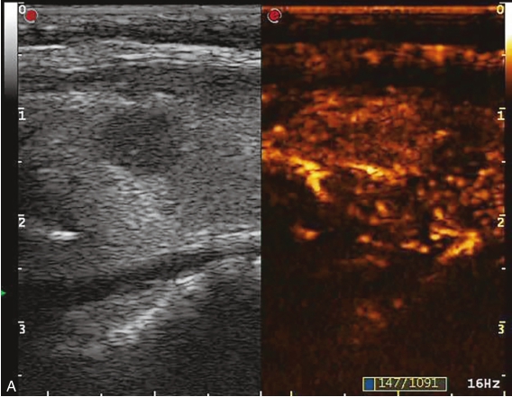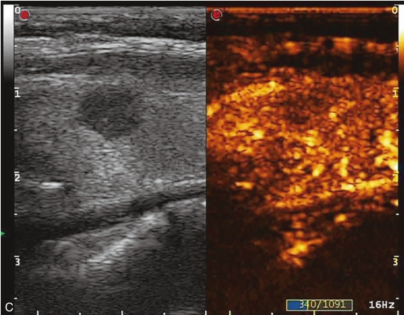 甲状腺髓样癌超声造影图像,见图1-9-4、ER1-9-2。