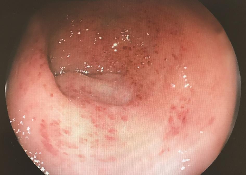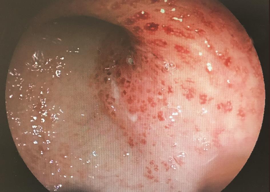 本例患者确诊诊断:溃疡性结肠炎,全结肠型,活动期,慢性复发性,中度。