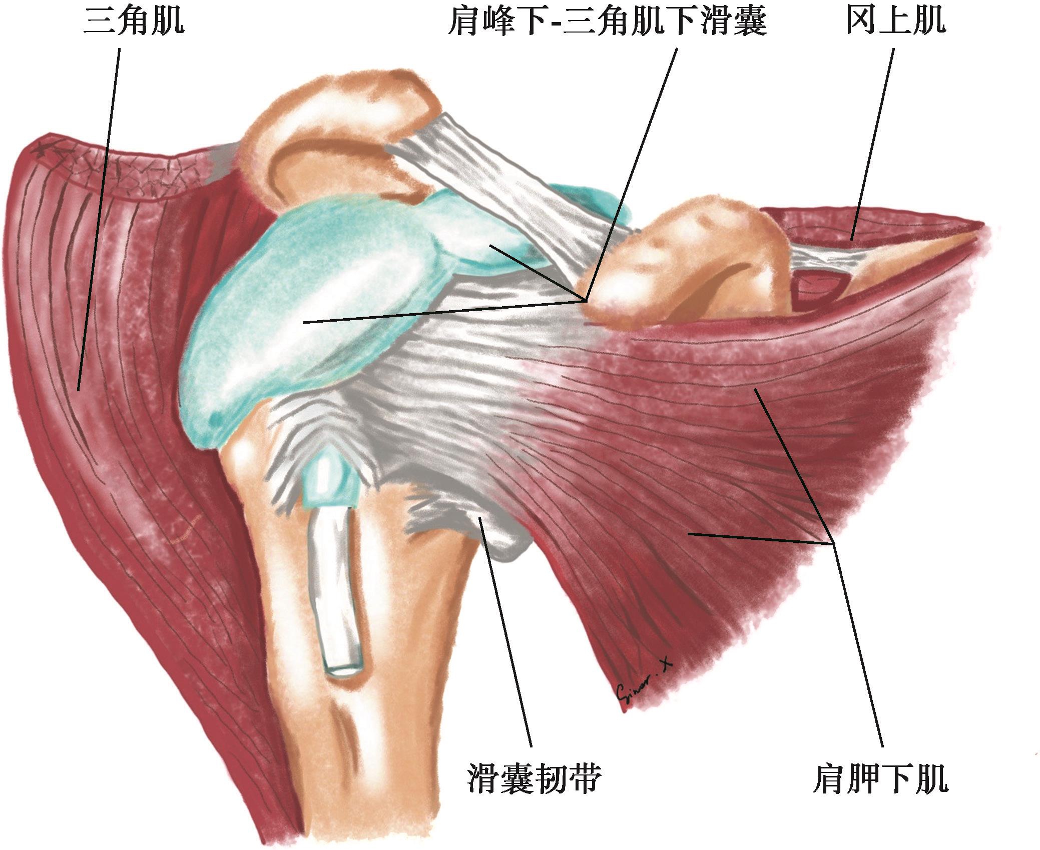 ▲ 图2-1-1 肩峰下-三角肌下滑囊解剖示意图