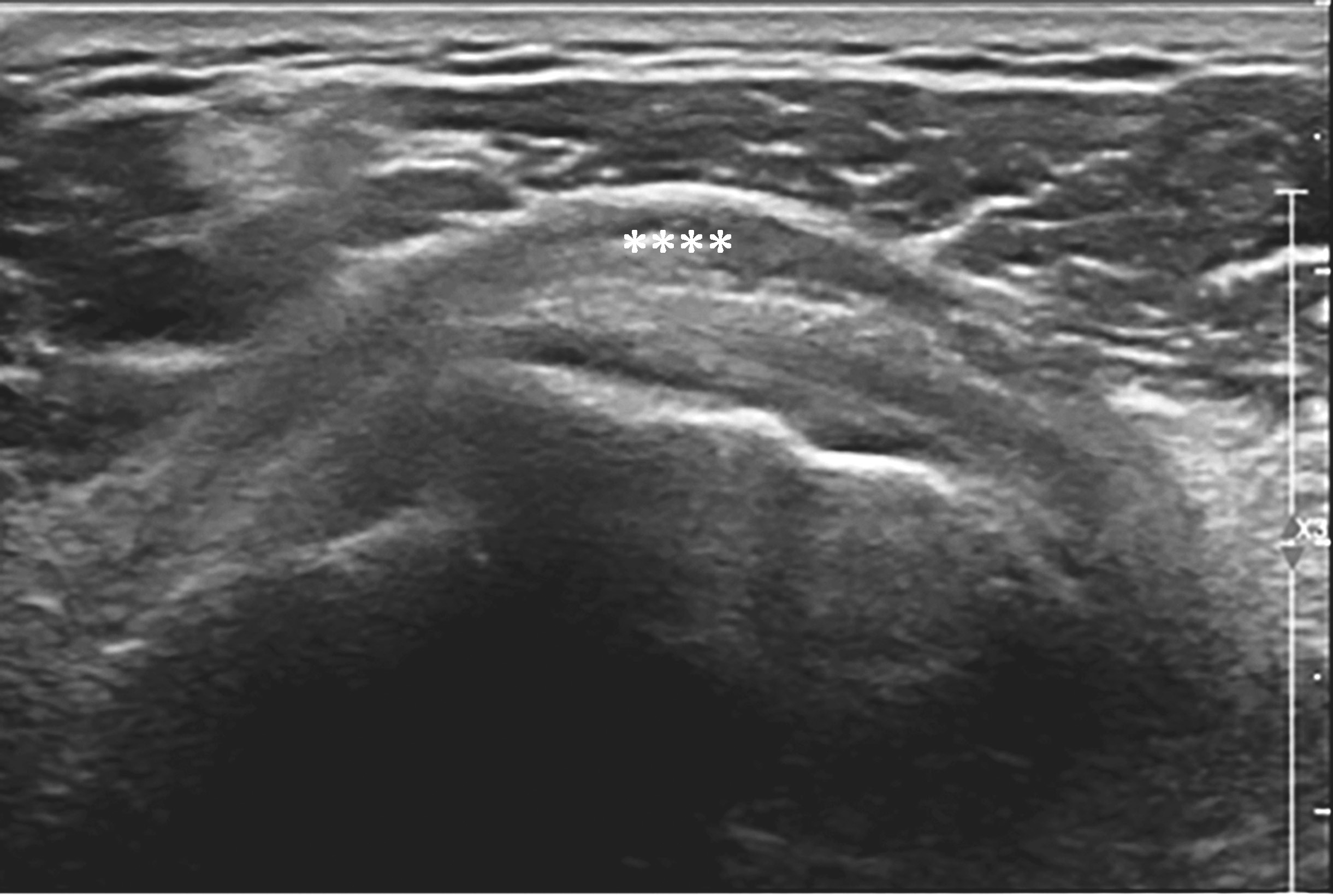 ▲ 图2-1-2 肩峰下-三角肌下滑囊炎超声图