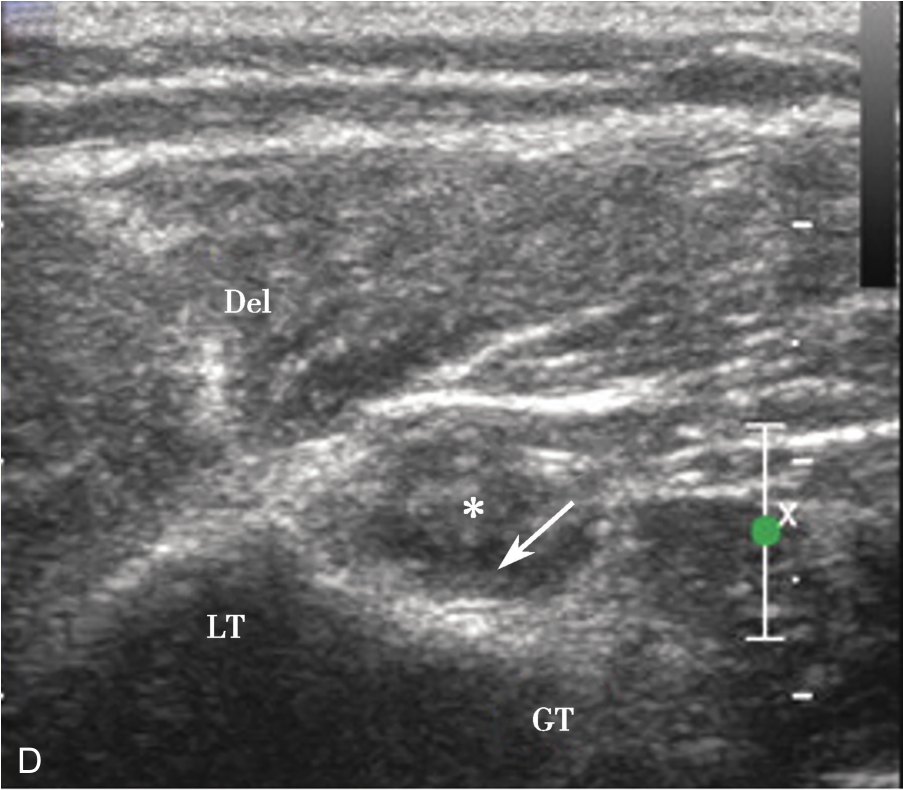 ▲ 图2-1-4 超声引导下肩峰下-三角肌下滑囊注射治疗超声图