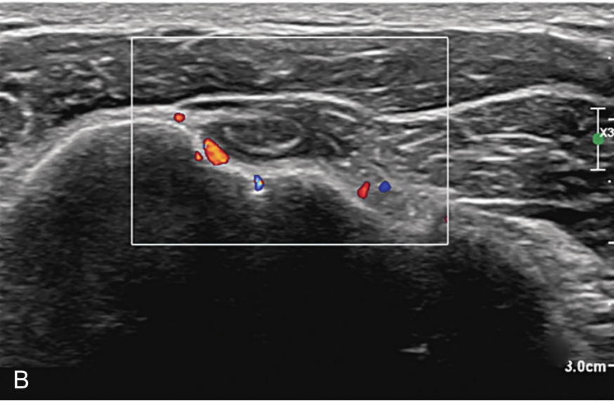 (3)注射完毕后,需对肱二头肌长头腱进行横切面和纵切面超声扫查,确认药物在腱鞘内分布。