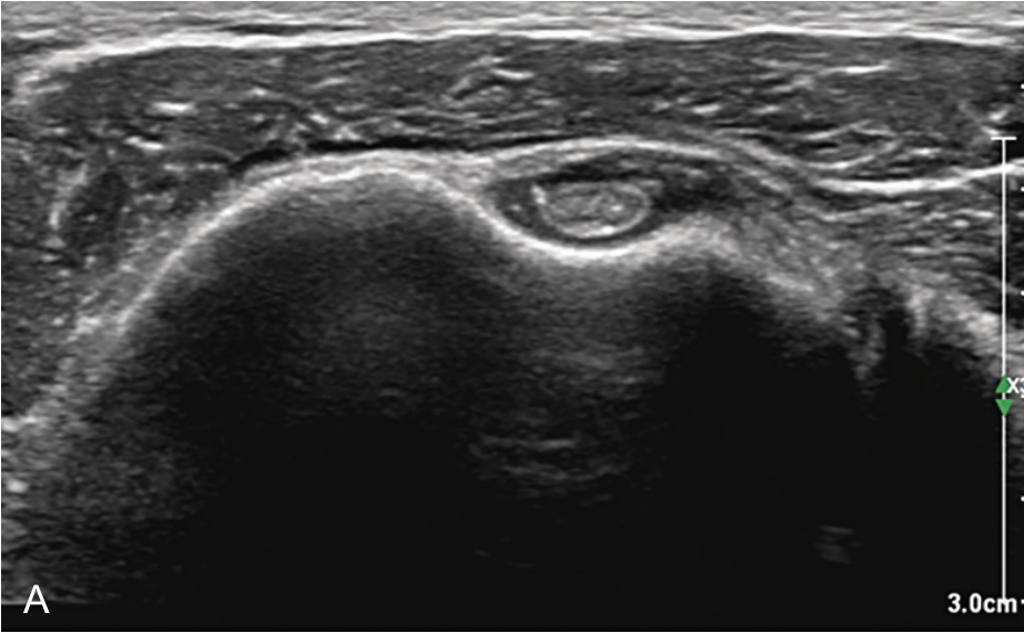 ▲ 图2-3-4 超声引导下肱二头肌长头腱鞘介入治疗超声图(一)