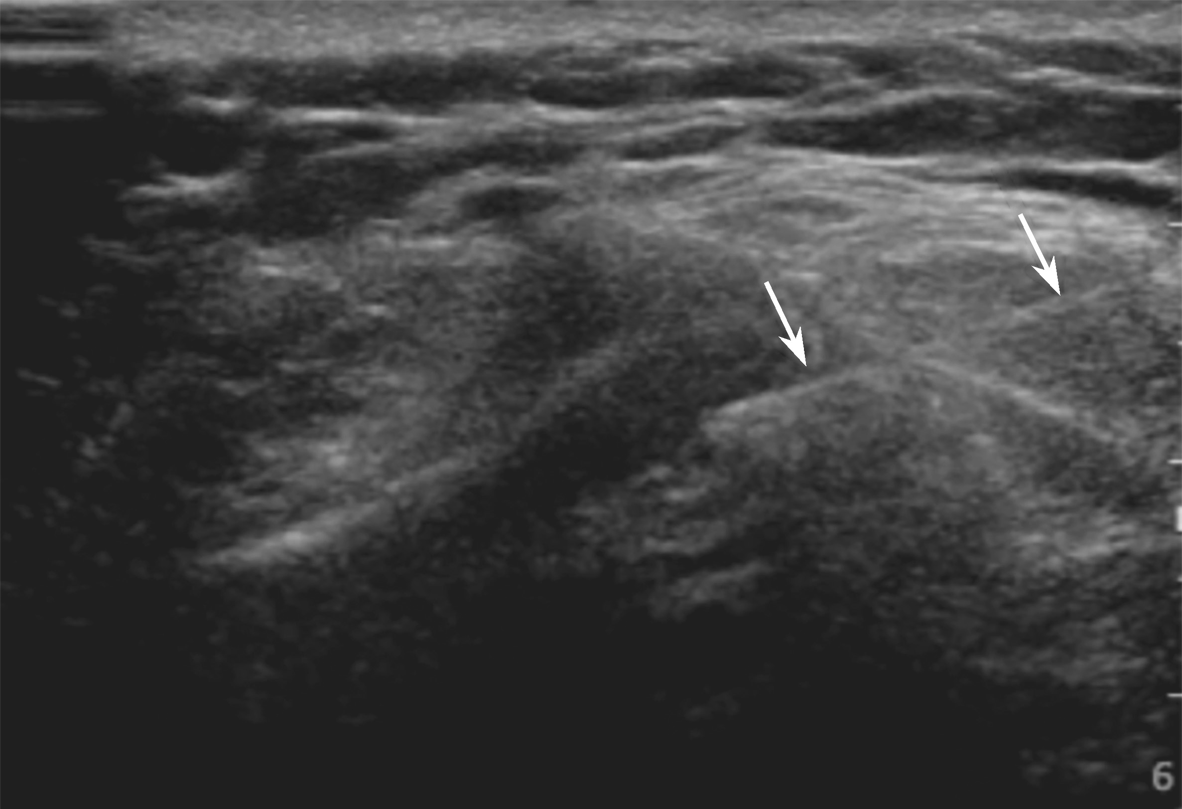 ▲ 图2-4-3 超声引导下肩锁关节腔介入治疗超声图(二)