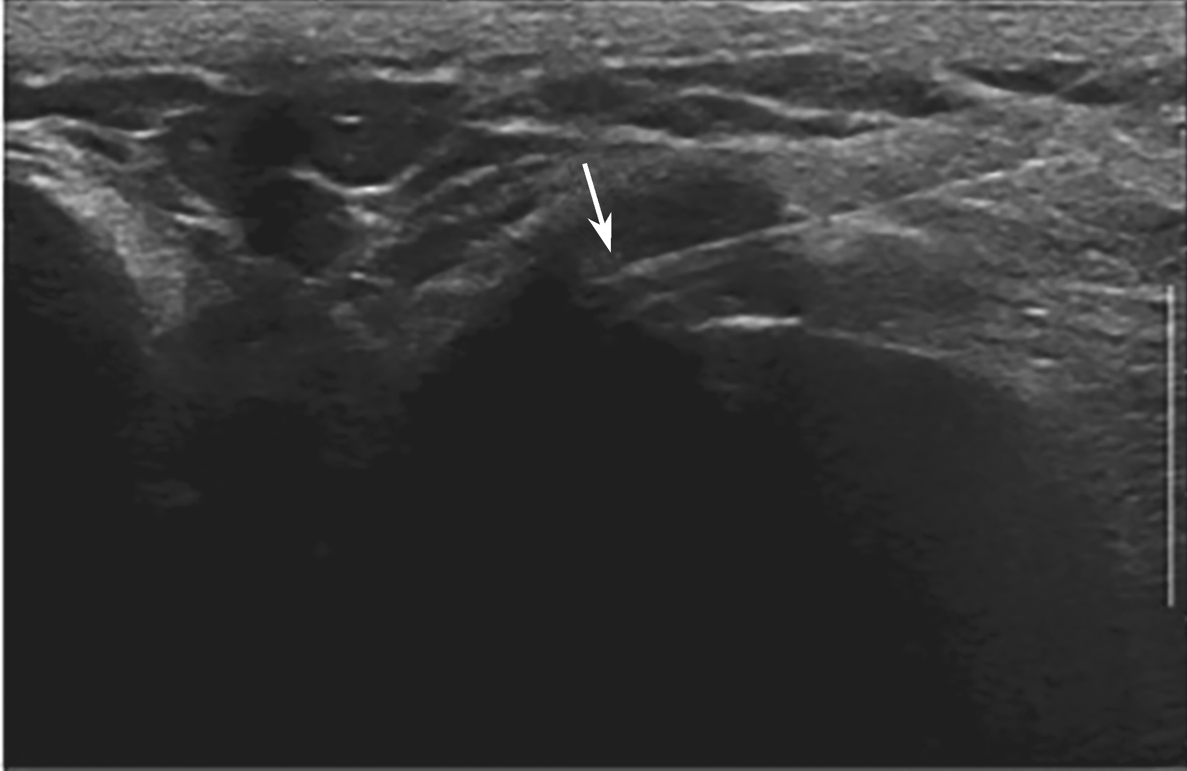 ▲ 图2-5-2 超声引导下胸锁关节腔介入治疗超声图