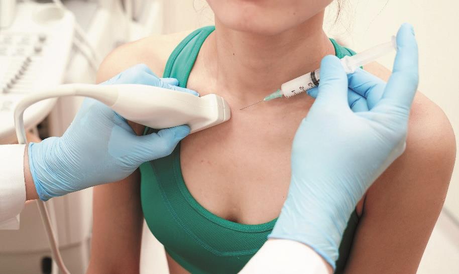 ▲ 图2-5-1 超声引导下胸锁关节腔介入治疗操作图