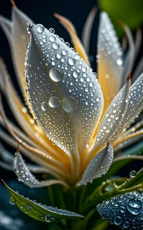 举个简单的例子。在古代,清晨花瓣上的露水是最适合泡茶的水源,它有一个名字叫作初露。据说杨贵妃泡茶使用的就是初露。下图是清晨花瓣上的露水。