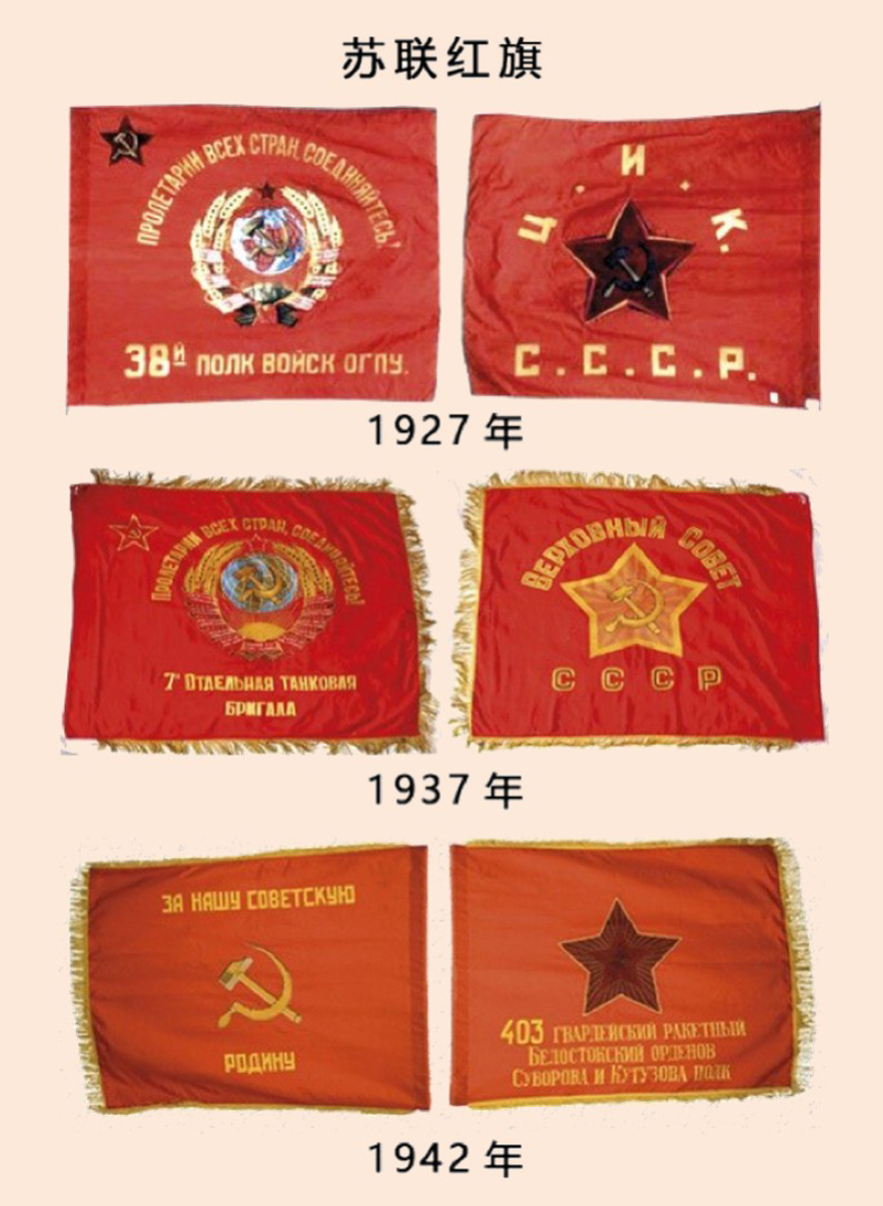 1927年2月3日,苏联革命军事委员会第57号命令宣布了红旗的图案及其象征意义;并于1942年12月24日,批准通过新样式的红旗。