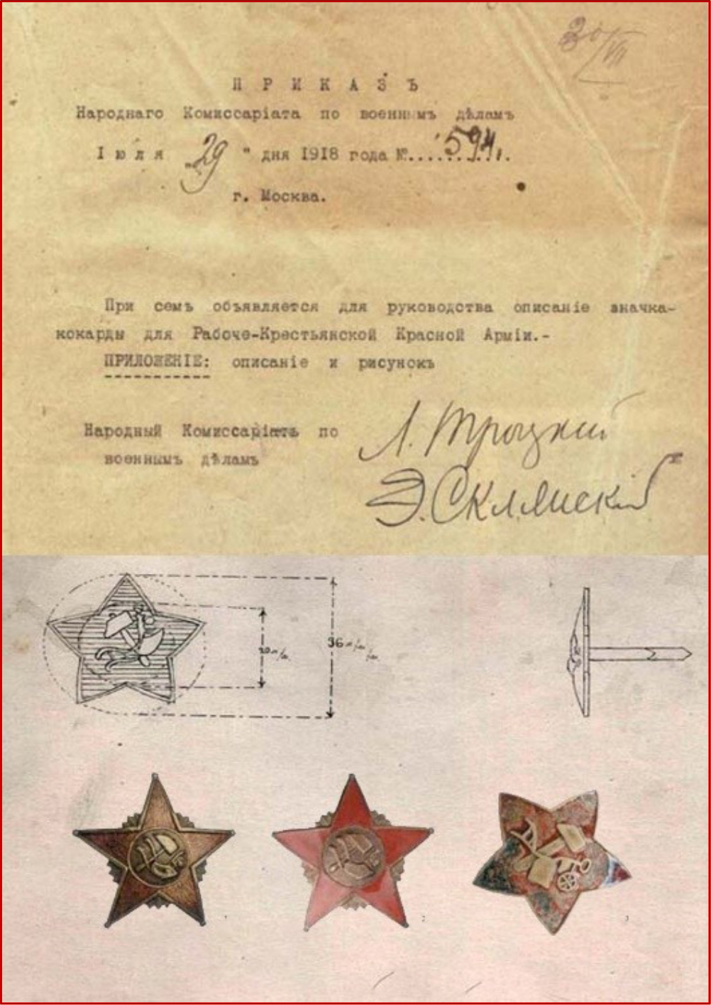 1918年7月29日,根据人民军事委员会第594号命令,红色五角星被正式确立为所有军事人员军帽上的纹章。红色五角星形式的统一军事符号使用了70余年,并成为国家和军事标识之间的联系,从而奠定了创建俄罗斯联邦武装部队统一军事标识的基础(图8)。