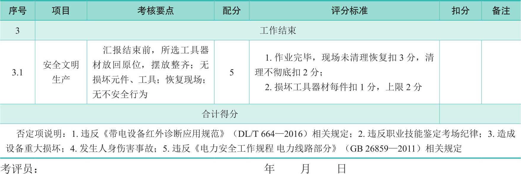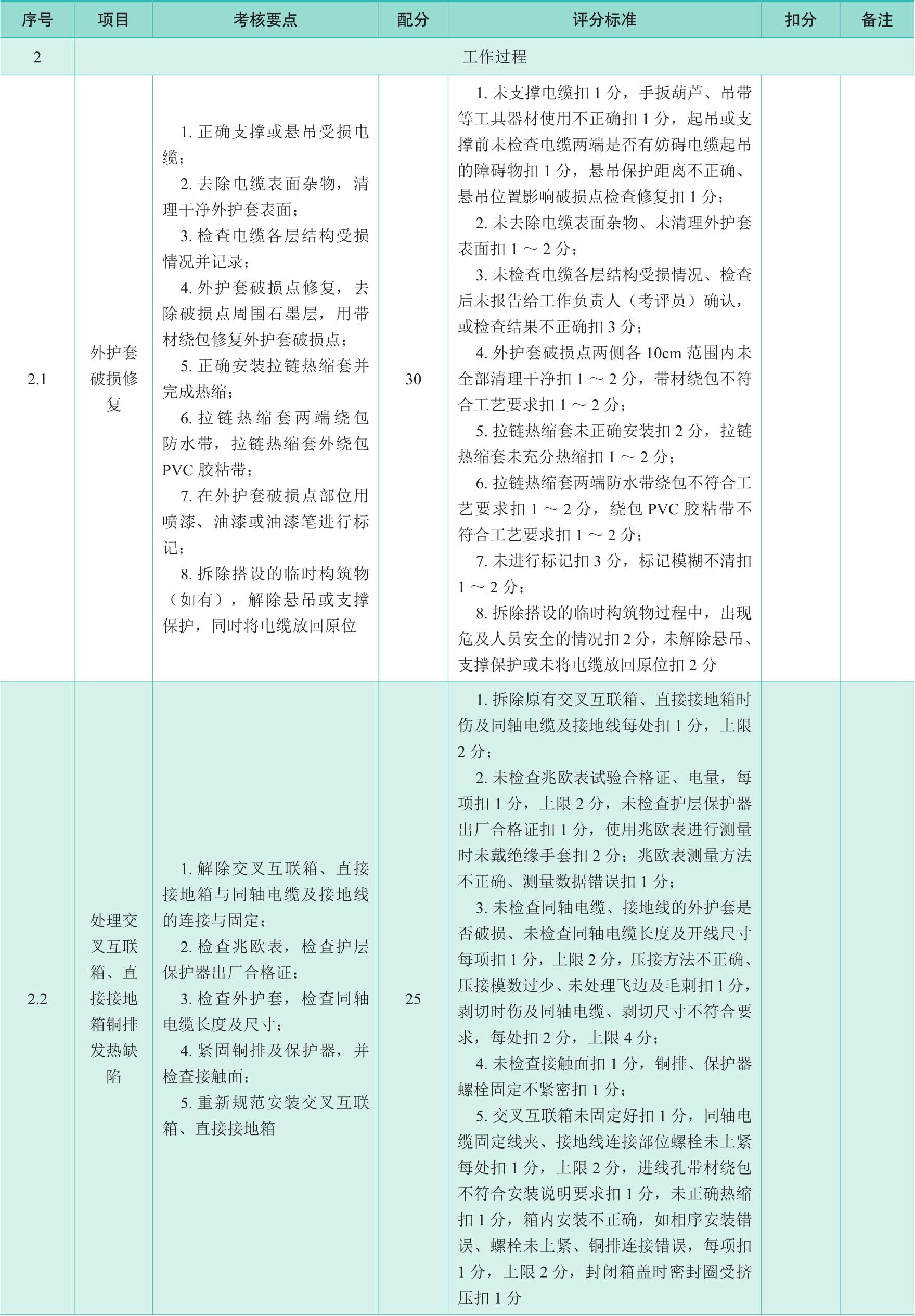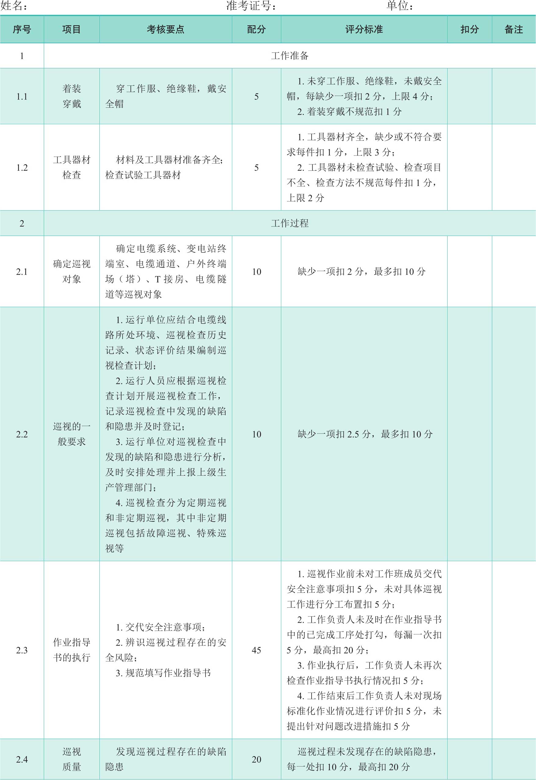 电缆缺陷检修考核评分记录表如表3-20所示。